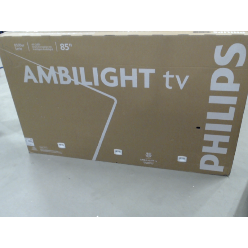 De Philips 85PUS8500/12 is een indrukwekkende 85-inch 4K QLED TV die je kijkervaring naar een hoger niveau tilt. Met zijn slanke Europese designontwerp, matzwarte rand en gebogen metalen standaard voegt deze smart-tv een stijlvolle touch toe aan je interieur. Het royale schermformaat biedt een indrukwekkende kijkervaring, optimaal voor filmliefhebbers en gamers. De 3-zijdige Ambilight-technologie projecteert kleuren op de muur achter de tv, wat zorgt voor een meeslepende sfeer die zich aanpast aan de content die je bekijkt. Dit innovatieve ontwerp maakt je kijkervaring niet alleen intenser, maar ook rustiger voor de ogen tijdens lange kijkavonden.