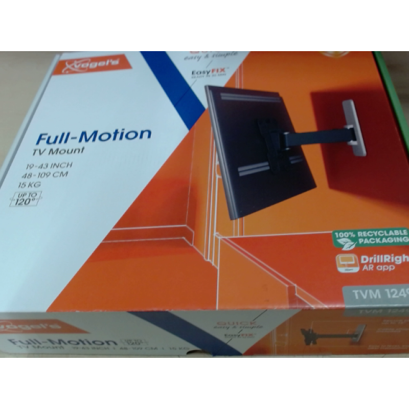 Bevestig je tv aan de muur met de Vogel’s Quick TVM 1249 tv-beugel. Hiermee bevestig je elke tv tussen 19 inch en 43 inch, tot een maximaal gewicht van 15 kilo. Bovendien is de beugel kantelbaar, zodat jij tv kijkt vanaf de bank én de eettafel.