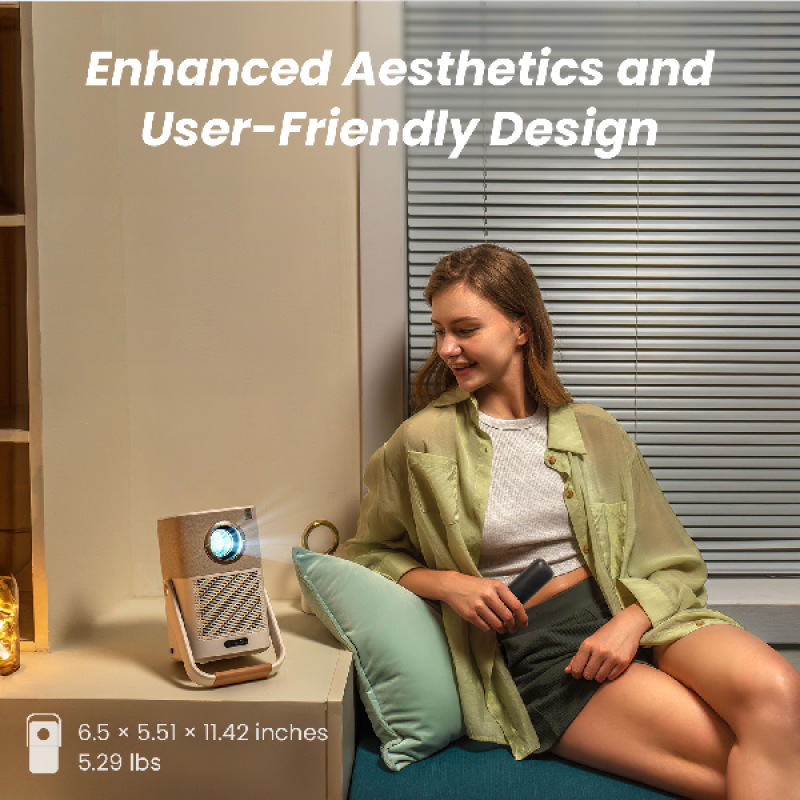 De T2 Plus Smart heeft een strak, aantrekkelijk design met een praktisch handvat dat je omvormt tot een standaard om de beamer schuin te plaatsen. Dit maakt hem bijzonder draagbaar en veelzijdig en laat je eindeloze content bewonderen vanuit elke hoek. De beamer draait tot slot op het Yaber OS-besturingssysteem, dat je tal van apps voorziet waaronder: Youtube, Amazon Prime en Netflix voor een enorme variatie aan films, series, documentaires en muziek.