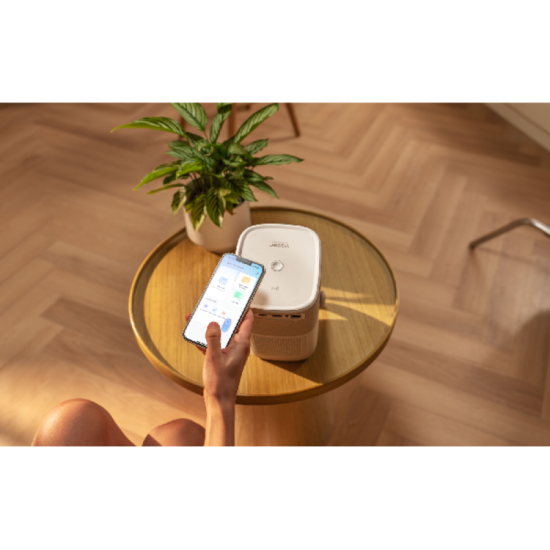 De beamer installeer je in een handomdraai en biedt verder tal van aansluitopties, waaronder draadloze verbindingen via bluetooth en wifi, evenals bekabelde opties zoals USB en HDMI. Dit betekent dat je eenvoudig je favoriete apparaten kunt aansluiten en direct kunt genieten van je content. Het strakke en aantrekkelijke design van de projector wordt verder versterkt door AI-ondersteunde keystone-correctie, dat voor een correct, scherp beeld met slimme schermuitlijning en hindernisontwijking zorgt.
