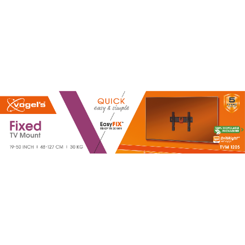 Bevestig je tv aan de muur met de Vogel’s Quick TVM 1209 tv-beugel. Hiermee bevestig je elke tv tussen 19 inch en 50 inch, tot een maximaal gewicht van 30 kilo. Dit ziet er niet alleen goed uit, het bespaart ook ruimte voor andere apparaten.