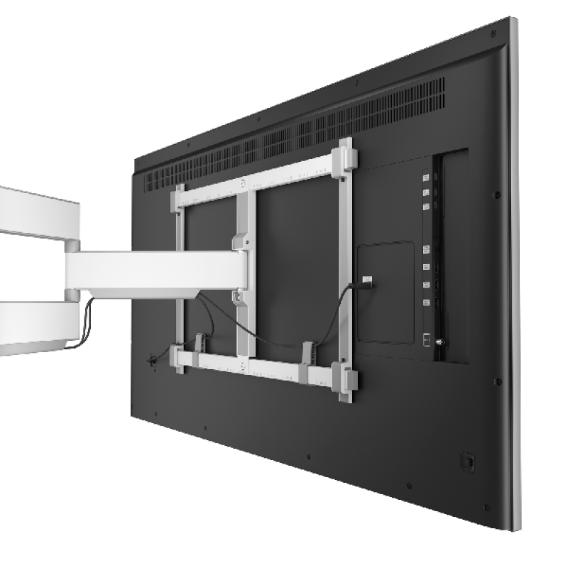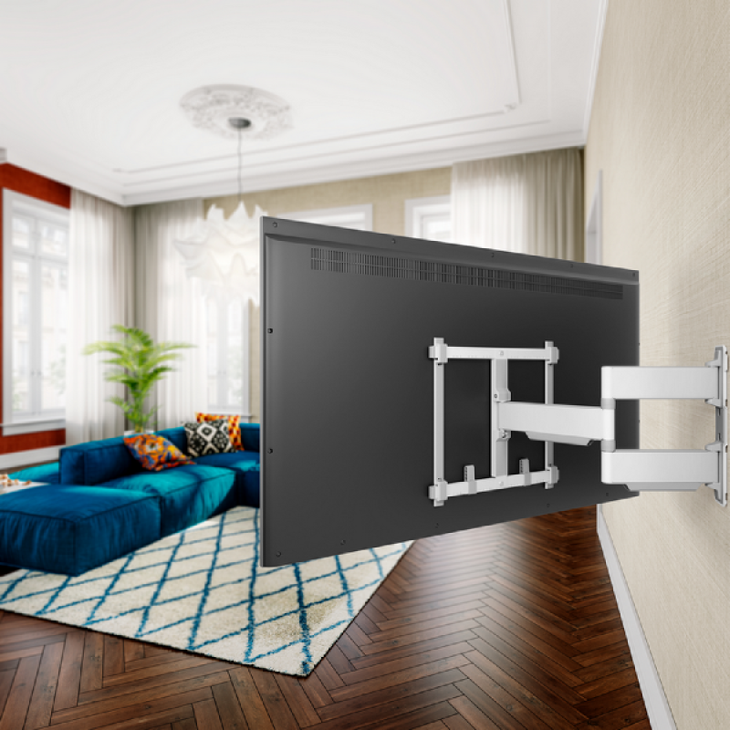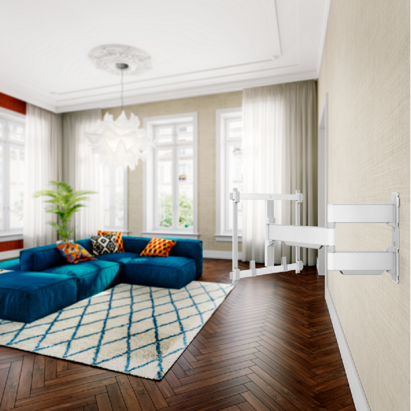 Vogels witte TVM 5445 Elite-draaibare tv-beugel is een extra sterke muurbeugel voor het monteren van tv’s van 32 tot 65 inch en met een maximaal gewicht van 35 kg. De beugel kan tot 180° worden gedraaid zodat je vanuit bijna elke hoek tv kunt kijken. De beugel heeft draagarmen van 56 cm. Afhankelijk van de grootte van het tv-scherm draai je hierdoor jouw tv-scherm linksom en rechtsom tot wel 90°. Dankzij de One-Finger Movement technologie draait de beugel zo soepel, dat je moeiteloos met 1 vinger de tv in de gewenste positie draait. Door de 2D-Leveling waarmee de tv-beugels zijn uitgerust hang je jouw tv zowel horizontaal als verticaal perfect waterpas. Aan de achterkant verberg je netjes de kabels met speciale kabelhouders. De benodigde materialen voor montage worden meegeleverd.