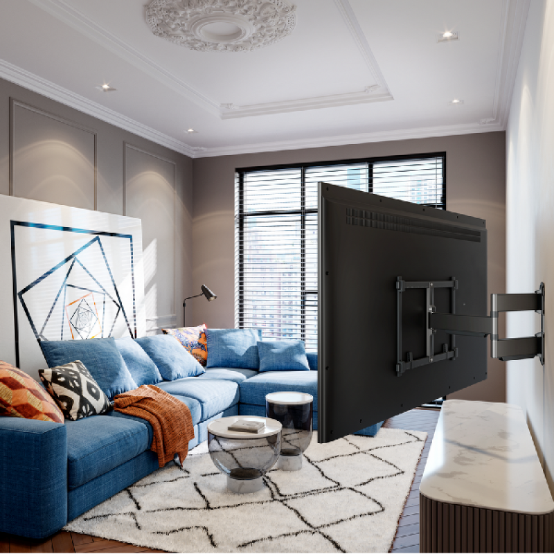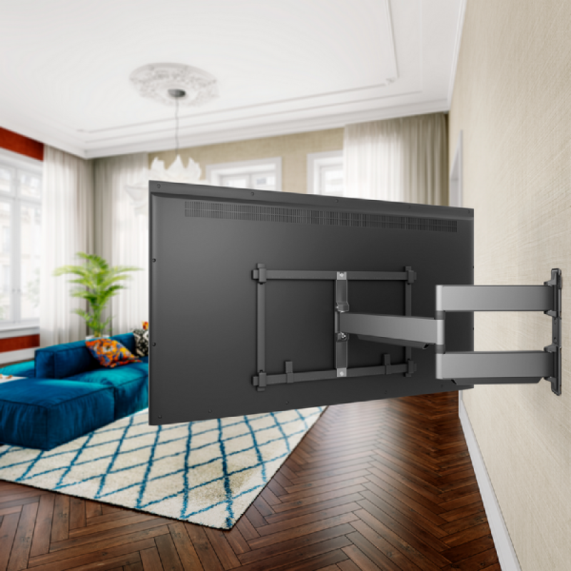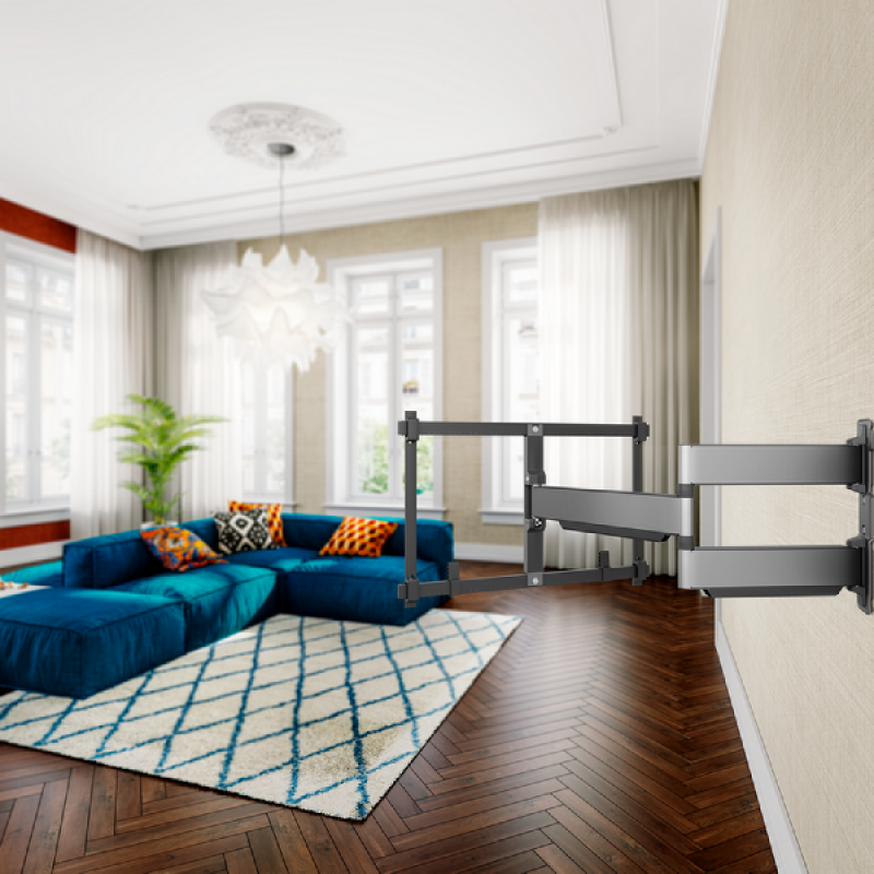 Vogels zwarte TVM 5845 Elite-draaibare tv-beugel is een extra sterke muurbeugel voor het monteren van tv’s van 55 tot 100 inch en met een maximaal gewicht van 55 kg. De beugel kan tot 180° worden gedraaid zodat je vanuit bijna elke hoek tv kunt kijken. Dankzij de One-Finger Movement technologie draait de beugel zo soepel, dat je moeiteloos met 1 vinger de tv in de gewenste positie draait. Door de 2D-Leveling waarmee de tv-beugels zijn uitgerust hang je jouw tv zowel horizontaal als verticaal perfect waterpas. Aan de achterkant verberg je netjes de kabels met speciale kabelhouders. De benodigde materialen voor montage worden meegeleverd.