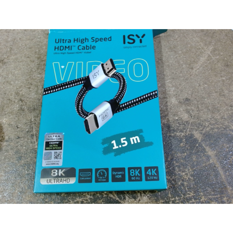 De ISY Ultra High Speed HDMI 2.1-kabel is geschikt om jouw televisie aan te sluiten op randapparatuur, zoals een console, mediaspeler of blu-rayspeler. De HDMI-kabel ondersteunt een hoge videoresolutie, namelijk tot 8K met een beeldverversingssnelheid tot 60 Hz, en heeft een overdrachtssnelheid van 48 Gbps. Met een lengte van 1,5 meter overbrug je een korte afstand tussen de diverse aangesloten apparaten.