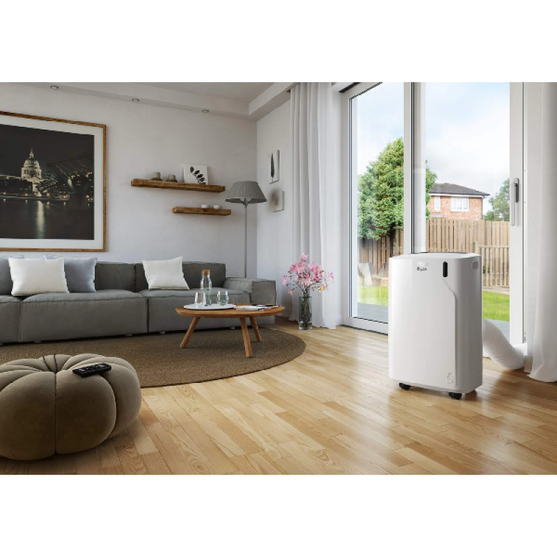 De De'Longhi Pinguino PAC EM82 is een mobiele airco met wieltjes en afstandsbediening. Hiermee zorg je voor heerlijke verkoeling in jouw (woon)kamer op warme zomerdagen. De airco is een veelzijdig apparaat: naast verkoelen kan hij ook ventileren en ontvochtigen. Zo zorg je gemakkelijk voor een prettig binnenklimaat. Je bedient de PAC EM82 met de afstandsbediening of via het paneel op het apparaat zelf. Verder is hij eenvoudig verplaatsbaar dankzij de wieltjes en is hij voorzien van een handige timerfunctie.