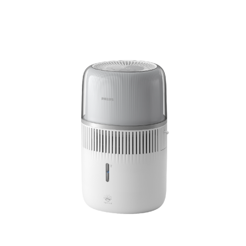 De HU5710/00-luchtbevochtiger heeft een ruim waterreservoir van 4,5 liter: genoeg om de lucht in kamers tot 56 m² te bevochtigen. Bovendien biedt het apparaat 3 ventilatorsnelheden en 8 luchtvochtigheidsniveaus van 30% tot 70%. Een fijne nevel wordt gelijkmatig verspreid zonder dat er druppels rond het apparaat ontstaan. NanoCloud-technologie zorgt bovendien voor luchtbevochtiging met tot wel 99% minder bacteriën dan ultrasone bevochtigers. Zo haal je pas echt opgelucht adem! En dat geldt ook voor het energieverbruik van dit stijlvol vormgegeven apparaat. Met maximaal 8 watt is het verbruik vergelijkbaar met een ledlamp. Wel zo fijn voor je energierekening én het milieu!
