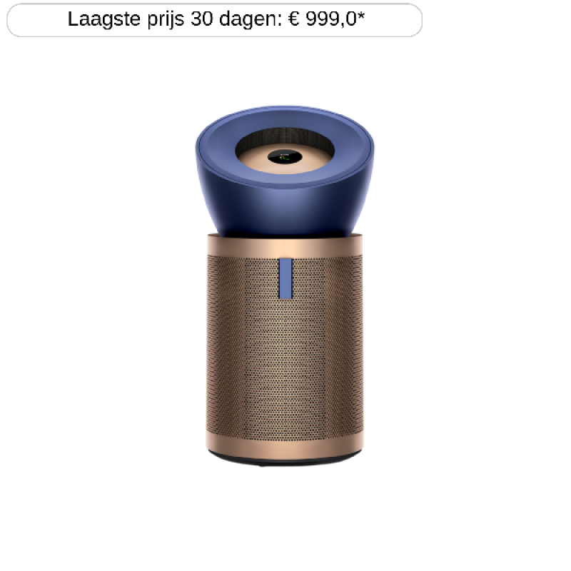 De Dyson Purifier Big+Quiet Formaldehyde BP04 in Pruisisch blauw/goud heeft een strak ontwerp dat rustig oogt in woonkamers, studio’s of grote kantoorruimtes. Met afmetingen van 41,5 × 83 × 43,4 cm (B/H/D) neemt hij duidelijk wat plek in, maar blijft de voet compact genoeg voor een hoek of naast een kast. Het gewicht van 11,9 kilo geeft een stevige basis, terwijl de verborgen wieltjes helpen bij het verplaatsen op harde vloeren. Het toestel is ontworpen voor ruimtes tot 100 m² en sluit aan bij een modern interieur.