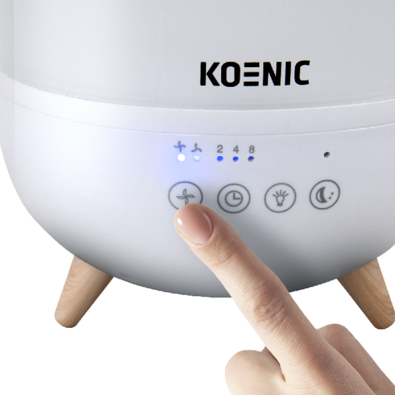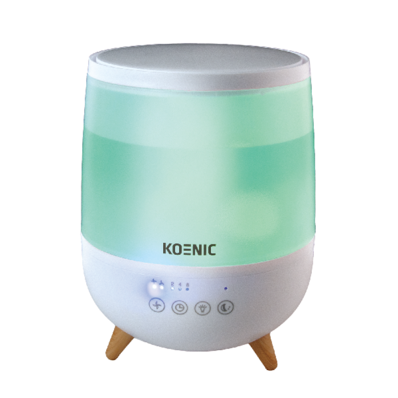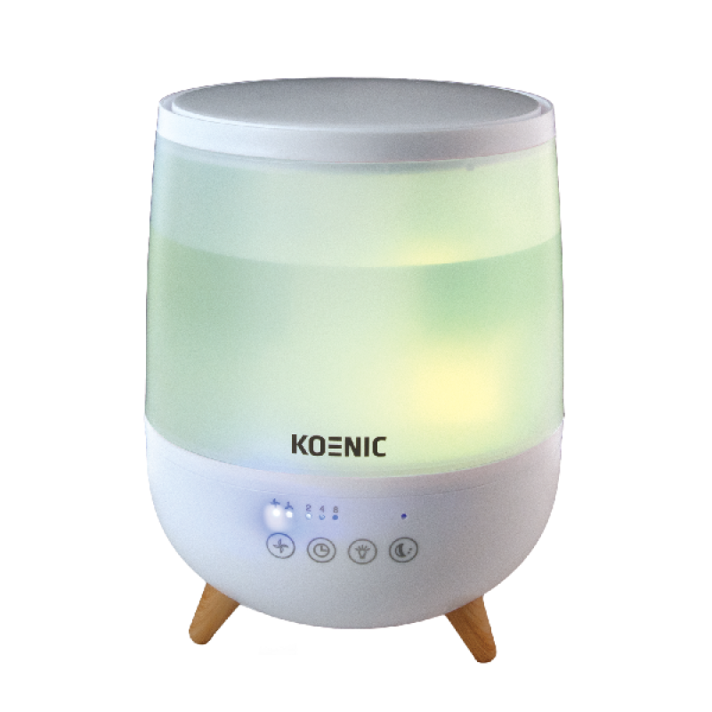 De KOENIC KHU 25225 luchtbevochtiger verbetert de luchtkwaliteit door vocht toe te voegen aan droge lucht. Dit kan klachten zoals droge huid, geïrriteerde ogen of een droge keel verminderen. Het toestel heeft een compact ontwerp dat geschikt is voor slaapkamers, woonkamers of werkruimtes. De stille werking zorgt dat het apparaat geen overlast geeft tijdens slapen of werken. Zo creëer je een aangenamer binnenklimaat, vooral tijdens de winter of in ruimtes met veel verwarming. Het apparaat draagt bij aan een comfortabele en gezonde leefomgeving.