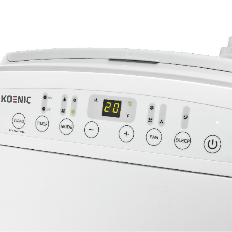 De KOENIC KAC 9022 Wit biedt krachtige en efficiënte koeling voor jouw huis of kantoor. De ingebouwde wifi-functionaliteit van deze airco laat je de temperatuur eenvoudig op afstand regelen via je Google of Amazon Alexa spraakassistent. Het apparaat is ontworpen voor middelgrote ruimtes tot 80m³ en beschikt over instelbare ventilatorsnelheden en temperatuurinstellingen. Zo geniet je op elk moment van een aangename koeling. Verder heeft het een timerfunctie, waarmee je specifieke tijden kunt instellen voor het in- en uitschakelen van de unit. Dankzij het moderne en strakke ontwerp past deze airconditioner naadloos in elk interieur.