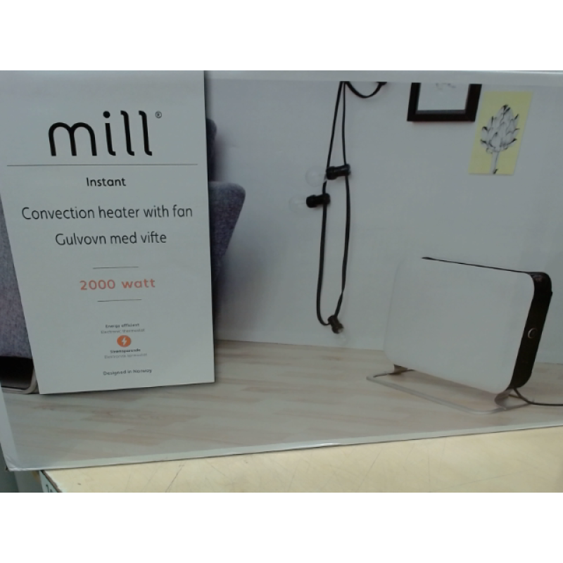 De Mill SG2000LED is een 2000W-convectorkachel met drie warmtestanden. Deze elektronische kachel valt met name op door zijn stijlvolle design. De stalen behuizing is strak afgewerkt met afgeronde hoeken. Door de aluminium voet lijkt de kachel boven de vloer te zweven. De Mill SG2000LED verwarmt ruimtes tot ongeveer 20 m². Door de ventilatorfunctie in te schakelen, verspreidt de kachel zijn warmte extra snel door de ruimte. Op het moment dat de ventilatorstand is uitgeschakeld, is de SG2000LED ook tijdens verwarming 100 procent stil. De kachel is beveiligd met een omval- en oververhittingsbeveiliging.