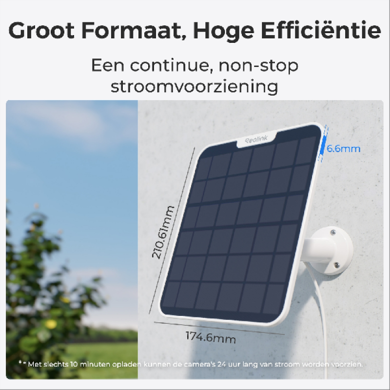Je hebt altijd stroom voor je Reolink-camera met de Reolink Solar Panel 2 Wit. Dit efficiënte zonnepaneel is speciaal ontworpen voor Reolink-camera’s zoals de Argus 2, Argus Pro en Reolink Go. Dankzij het weerbestendige ontwerp en de meegeleverde 4 meter lange kabel installeer je het paneel eenvoudig op een zonnige plek. De verstelbare 360° wandbeugel zorgt voor soepel aangepaste positionering. Het apparaat is uiterst geschikt voor buitengebruik en je hebt geen gedoe meer met batterijen of opladen. Milieuvriendelijk, betrouwbaar en onderhoudsarm.