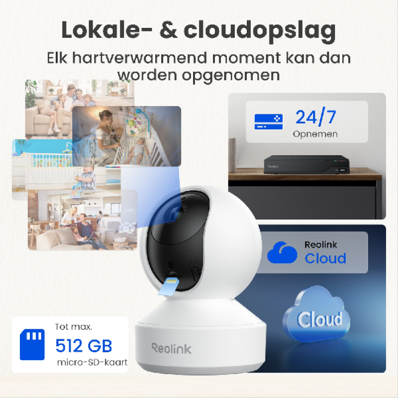 De Reolink E340 indoor camera Wit staat voor slimme beveiliging in Super HD. Deze compacte IP-camera biedt 5MP Super HD-beeldkwaliteit, 3x optische zoom en een brede kijkhoek dankzij 355° pan en 50° tilt. Met behulp van zijn slimme persoons- en huisdierdetectie, automatische tracking en nachtzicht tot 12 meter mis je geen enkel detail. Zowel overdag dag als ‘s nachts. Verbind hem eenvoudig via dual-band wifi en bedien alles via de Reolink-app. Met tweerichtingsaudio, bewegingsmeldingen en ondersteuning voor Google Assistant is deze camera een meerwaarde voor thuisbeveiliging. Inclusief microSD-slot tot 128 GB en montagekit.