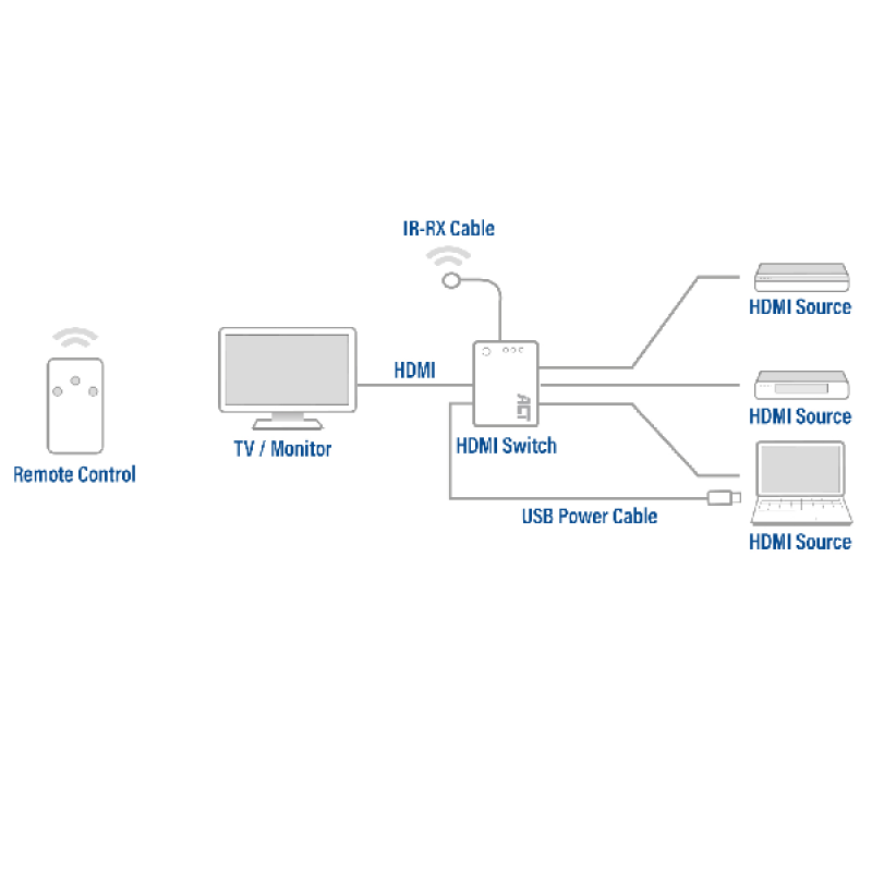 Met de ACT AC7845 sluit je tot drie 4K60-videobronnen aan op een enkele HDMI 2.0-aansluiting op je tv of monitor. Dat maakt het dus heel makkelijk om meerdere spelcomputers of pc’s op hetzelfde beeldscherm aan te sluiten, terwijl je toch gebruik maakt van 4K60-kwaliteit. Je kiest gewoon welke bron je wil gebruiken met de meegeleverde afstandsbediening en je bent klaar.
