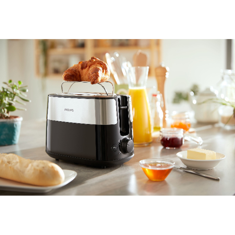 Het overkomt iedereen wel eens: je bent vergeten om brood uit de vriezer te halen, maar je hebt wel nú trek. Daarom heeft deze Philips-broodrooster een handige ontdooifunctie, waarmee je boterham in een mum tijd klaar is om geroosterd te worden. Ook als je even werd afgeleid terwijl je brood net klaar was, is er geen man overboord. Dan laat je gewoon de heropwarmfunctie z’n werk doen! En dankzij de geïntegreerde opzethouder blijven ook versgebakken broodjes of croissantjes warm. Zo kun je lekker lang de tijd nemen voor je zondagse ontbijtje, zonder dat je broodjes koud worden.