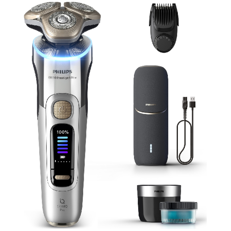 Ervaar een glad en comfortabel scheerresultaat tot op -0,08mm van de huid met de zilveren Shaver i9000 XP9404/31. Profiteer van een gepersonaliseerde scheerbeurt, dankzij AI-technologie en zijn gepatenteerde Triple Action Lift & Cut-technologie zorgt voor een gladde en comfortabele scheerbeurt elke keer weer. Wanneer je te hard of te zacht scheert, geeft de Pressure Guard-sensor dit via de led-ring aan. De beschermende SkinGlide-coating op de scheerkop vermindert dan weer huidirritatie, voor een comfortabel en glad resultaat. Op een volle batterij gaat hij tot 60 minuten mee en met een snelle laadtijd van 5 minuten via de oplaadstandaard heb je genoeg stroom voor een volledige scheerbeurt. Voor tips en begeleiding bij verschillende scheertechnieken, biedt Philips de handige GroomTribe-app, en verbeter je gebruikservaring. Je krijgt er bovendien een reisetui, een meegeleverde Quick Clean Pod en reinigingsstation dat geschoren haren en het apparaat in 1 minuut reinigt.