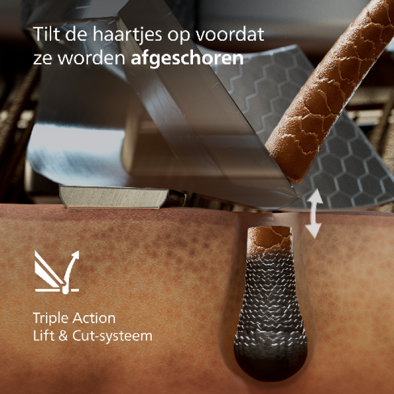 Scheerkoptechniek Triple Action Lift & Cut System, NanoTech Dual Precision blades