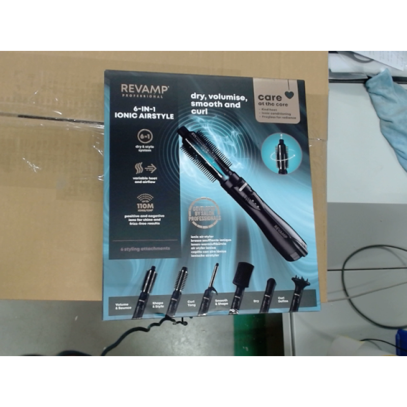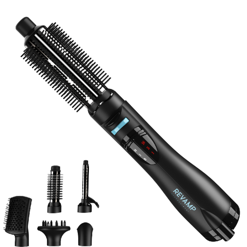 De Revamp Progloss Airstyle 6-in-1 DR-1250 is een echte duizendpoot die niet mag ontbreken in je badkamer. Je krijgt er namelijk 6 verschillende opzetstukken bij waarmee je allerlei uiteenlopende kapsels creëert. Als je van afwisseling houdt, is deze multistyler dus zeer geschikt voor jou! Ga jij vandaag voor krullen of een steile coupe? Welk opzetstuk je ook kiest, je bent verzekerd van goede stylingresultaten én haarverzorging. Ze zijn namelijk stuk voor stuk voorzien van een Progloss-coating met keratine en argan- en kokosolie. Deze oliën voeden je haar en geven het een glanzende look. Tegelijkertijd is statisch en pluizig haar verleden tijd dankzij ionische technologie. Je creëert dus altijd een strakke look. Verder stem je de styling eenvoudig af op jouw lokken met de 4 hittestanden en 2 snelheden, waaronder een cool-shotfunctie waarmee je je look fixeert. Je stylet dus altijd precies op jouw manier.