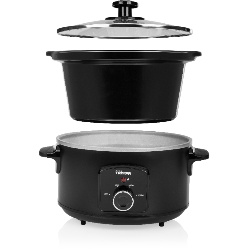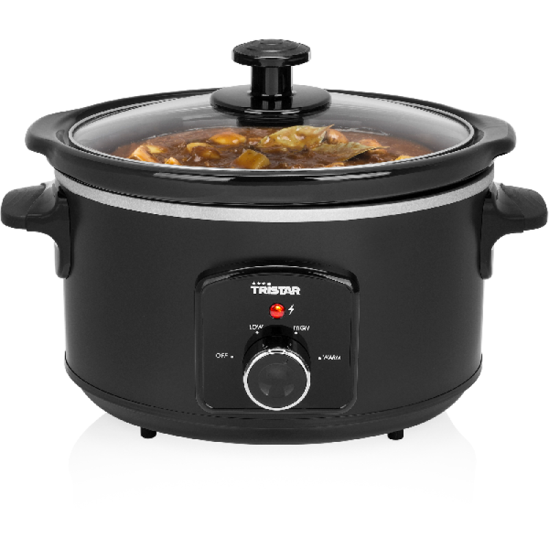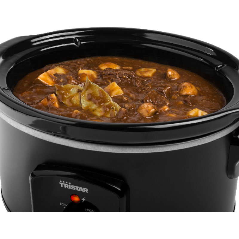 Maak heerlijke stoofpotten, soepen en sauzen met de Tristar VS-3915 slowcooker. Dankzij de langzame garing blijven voedingsstoffen bewaard, wordt vlees heerlijk mals en sappig en geniet je van rijke smaken. Vul 's ochtends de slowcooker met verse ingrediënten en kies één van de twee verwarmingsstanden. Zo maak je binnen 3 uur een stoofschotel of laat je jouw gerecht 10 uur lang sudderen. Wat je ook kiest, dankzij de ruime keramische binnenpan van 3,5 liter maak je genoeg draadjesvlees voor 4 personen. Dankzij de warmhoudfunctie blijft het gerecht warm totdat het jou uitkomt om op te dienen. Na gebruik is de slowcooker zeer makkelijk schoon te maken. De binnenpan is uitneembaar en gemakkelijk af te spoelen onder de kraan. Heb je gemorst op de Tristar VS-3915? Door de roestvrijstalen behuizing is een doekje eroverheen halen meer dan genoeg.