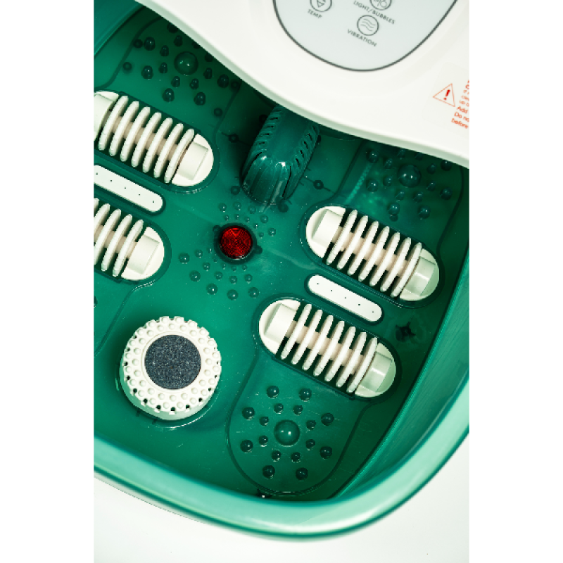 De ZEN Nile Balneotherapie (PG ZEN-B1-NL) is een uitgebreid voetbad dat ontspanning biedt via 4 functies: een bubbelbad, 4 massage-rollen met acupunctuurpunten, een trillingsfunctie die de bloedsomloop stimuleert en een verwarmingsfunctie voor extra comfort. Het apparaat is ontworpen voor gebruik thuis en zorgt voor een rustgevend verzorgingsmoment na een lange dag.