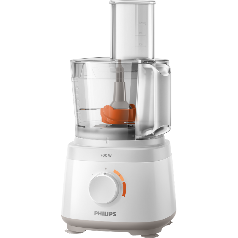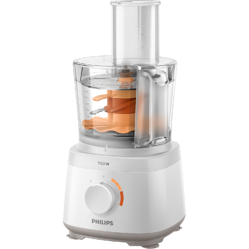 Met de Philips HR7320/00 compacte keukenmachine zet je in alle hectiek toch nog een heerlijke en gezonde maaltijd op tafel. De krachtige 700 W motor mengt, kneedt, snijdt en hakt ingrediënten moeiteloos. Dankzij de grote vultrechter hoef je zo min mogelijk vooraf te snijden. Alle losse onderdelen van deze keukenmachine kunnen na gebruik in de vaatwasser.