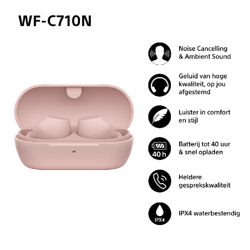 De WF-C710N oordopjes zijn voorzien van Precise Voice Pickup Technology, die achtergrondgeluiden filtert en je stem versterkt tijdens telefoongesprekken, zelfs in lawaaierige omgevingen. Met de snellaadfunctie kun je na slechts 5 minuten opladen weer 60 minuten luisteren, handig voor drukke dagen. Daarnaast zorgt de draagdetectie ervoor dat de muziek automatisch pauzeert wanneer je een oordopje uitneemt, wat het gebruiksgemak verhoogt.