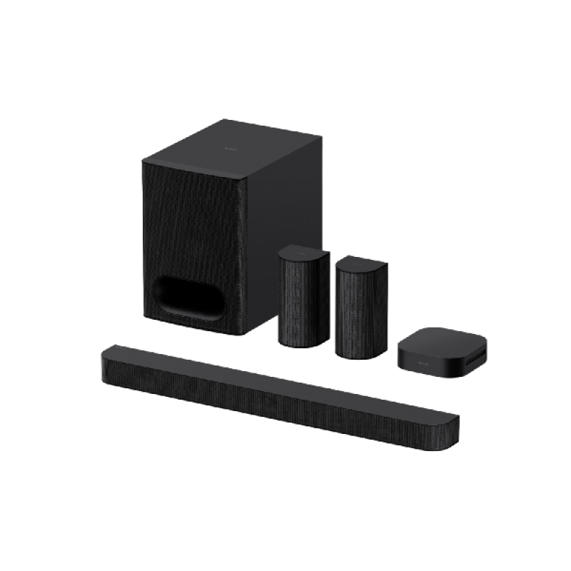 De Sony BRAVIA Theatre System 6 home cinema set in zwarte uitvoering heeft een strak en minimalistisch design dat naadloos aansluit bij moderne interieurs. De soundbar is laag en breed, waardoor hij perfect onder je BRAVIA-tv past zonder het scherm te blokkeren. De draadloze subwoofer kan flexibel in de ruimte worden geplaatst, zodat je de optimale plek voor de beste basweergave kunt kiezen. Met de meegeleverde achterluidsprekers creëer je een volledige 5.1-kanaals home cinema-ervaring. De hoogwaardige afwerking en het gebruik van duurzame materialen zorgen voor een lange levensduur en een premium uitstraling.