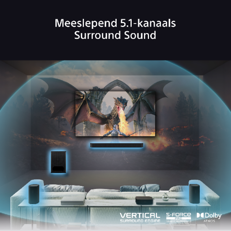 Dankzij Dolby Atmos en DTS:X wordt geluid in meerdere dimensies weergegeven, waardoor je je midden in de actie waant. De Vertical Surround Engine en S-Force PRO Front Surround-technologieën van Sony zorgen voor een virtuele surround-ervaring zonder extra luidsprekers. Met de Voice Zoom 3-functie worden dialogen helder en duidelijk weergegeven, zelfs tijdens intense actiescènes. De Vertical Surround Engine simuleert hoogte-effecten, terwijl S-Force PRO Front Surround een breed geluidsveld creëert. Bovendien zorgt de Multi Stereo Party Mode ervoor dat stereogeluid wordt uitgebreid naar alle luidsprekers, wat ideaal is voor feestjes en bijeenkomsten.
