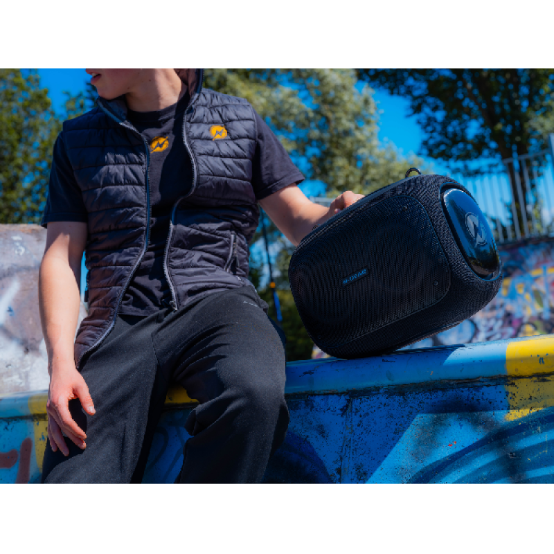 Geniet overal van je favoriete muziek met de N-Gear NRG 600. Deze draadloze speaker biedt krachtig, helder geluid, of je nu achtergrondgeluid wilt tijdens het koken of een gezellig feest geeft. En over feesten gesproken: met de gesynchroniseerde verlichting die deze draagbare partyspeaker biedt, maak je van elk feest een succes! Zei daar iemand karaoke? Ook dan is de NRG 600 van de partij, want hij wordt geleverd met maar liefst 2 microfoons. Verder heeft de speaker een compact formaat en een handig handvat, zodat je hem eenvoudig meeneemt. Ga dus gerust naar het huis van een vriend of verzorg de muziek tijdens een poolparty. Een spetter water hoeft de pret zeker niet te drukken, want de NRG 600-speaker is IPX5-waterbestendig en dus lekker stevig. Ook de batterij is een echte krachtpatser, want die biedt tot 10 uur luisterplezier. En als de batterij leeg is, sluit je de bluetoothspeaker gewoon aan op een stopcontact zodat de muziek niet hoeft te stoppen. Koppel je smartphone of andere apparaten simpelweg via bluetooth of de USB-poort en begin meteen met luisteren. Laat die muziek maar komen!