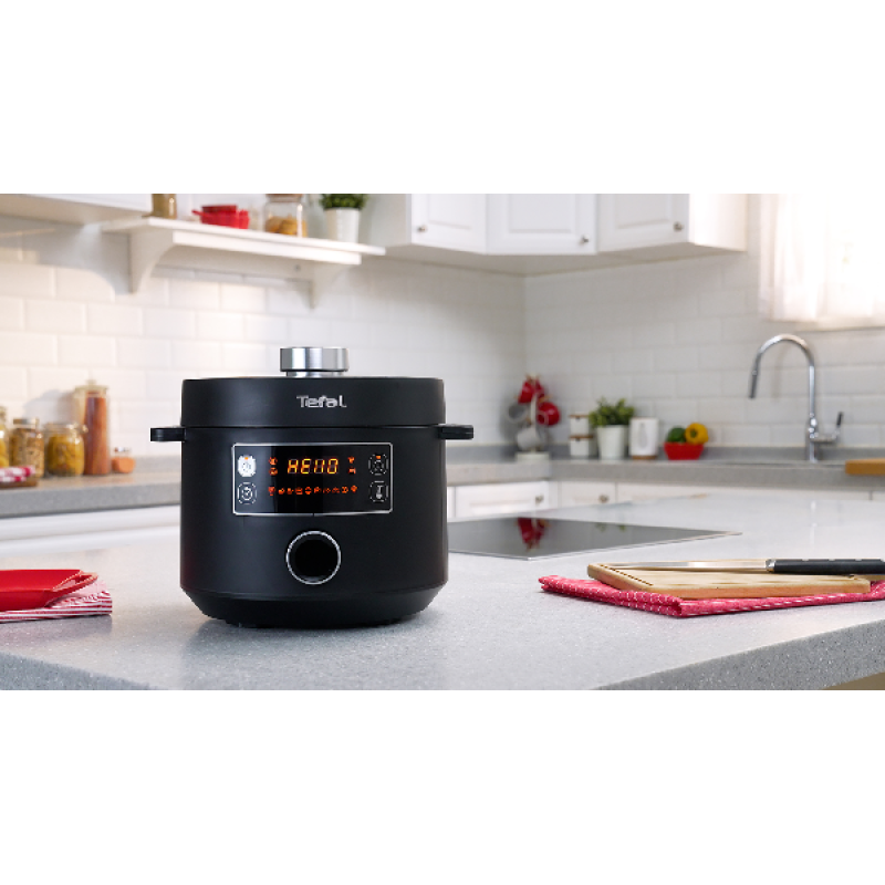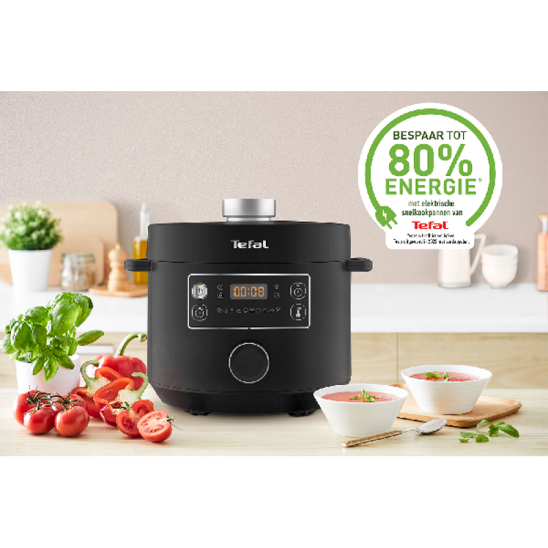 De Tefal CY7548 Turbo Cuisine Multicooker, is de oplossing voor al je maaltijden. Deze multicooker garandeert snellere kookresultaten, dankzij het innovatieve design. De bolvormige pan biedt een groter verwarmingsoppervlak met optimale warmteverspreiding en circulatie, zodat je elke dag kunt genieten van malse en sappige gerechten. Van voorgerechten tot desserts, allemaal te maken met één apparaat dat een snelkookpan, stoomkoker en soepmaker in 1 is. De multicooker beschikt over 10 automatische kookprogramma’s, maar is ook voorzien van een handmatige functie zodat je kunt instellen naar je eigen wensen. Ook zit er een programmeerbare timer in de multicooker, waarbij je starttijd kan uitstellen tot wel 12 uur en een 24-uurs automatische warmhoudfunctie. Tot slot is de multicooker voorzien van een intuïtieve bedieningsknop, en door de anti- aanbaklaag in de pan is hij ook eenvoudig te reinigen.