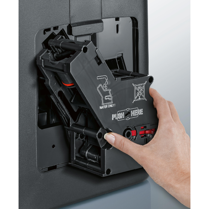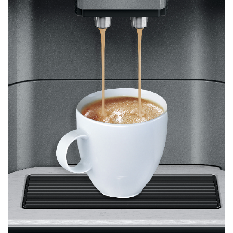De koffiemachine van Siemens beschikt over een uniek, hoogwaardig keramisch maalsysteem en maakt gebruik van iAroma-technologie. Deze technologie zorgt ervoor dat jouw koffie slim wordt voorbereid en haalt de aroma’s zo optimaal mogelijk uit de koffiebonen. Houd je van een sterke kop koffie? De aromaDouble Shot-functie geeft jouw koffie een extra sterke smaak zonder dat deze bitter wordt. Als je liever voor een melkspecialiteit kiest, dan creëer je met het CreamCenter zeer fijn melkschuim. Maak hierbij een keuze uit een melkcontainer of tap de melk direct uit een pak.