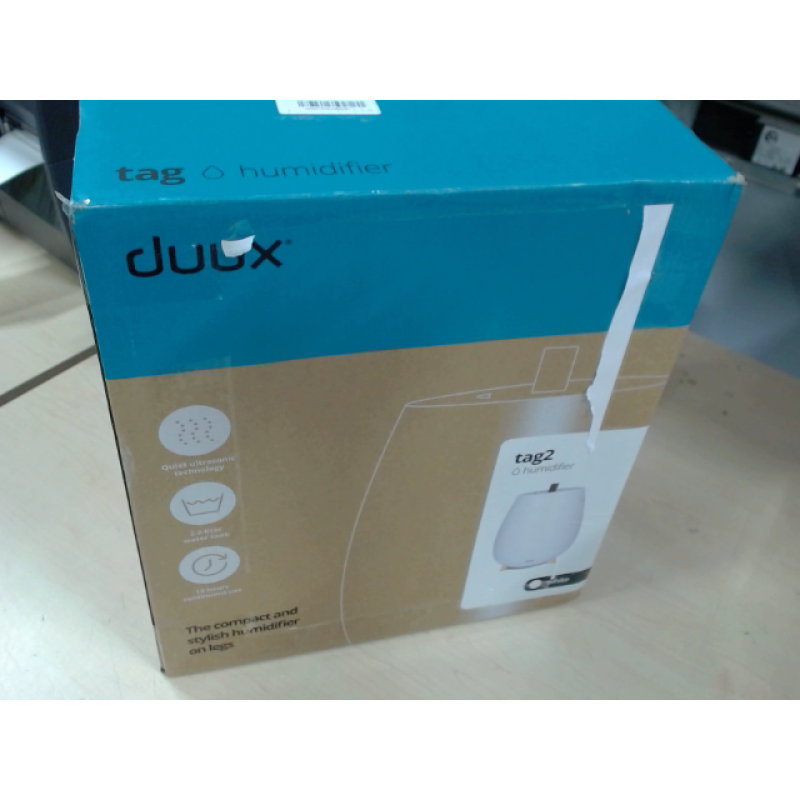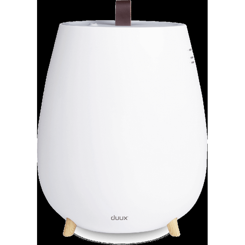 Met de Duux Tag 2 zorg je voor een prettig binnenklimaat in huis door droge lucht geruisloos te bevochtigen met koude nevel. Zo heb je geen last meer van hoofdpijn, vermoeidheid, prikkende ogen of statische elektriciteit door droge lucht. Deze luchtbevochtiger heeft een stille werking, doordat de koude nevel wordt gemaakt door ultrasone geluidstrillingen die voor het menselijk oor niet hoorbaar zijn. Verder werkt hij energiezuinig: hij verbruikt tot 80% minder stroom dan tradionele stoombevochtigers. Dankzij het grote waterreservoir van 2,5 liter gaat de Tag 2 tot wel 10 uur mee. Wanneer het reservoir bijna leeg is, kleurt de verlichting aan de onderkant automatisch rood. De cartridge in de watertank houdt bacteriën buiten de deur en voorkomt kalkaanslag, zowel in het apparaat als in de nevel. Dit zorgt ervoor dat de luchtbevochtiger makkelijk te onderhouden is en je geen last hebt van witte neerslag in je huis als gevolg van kalk.