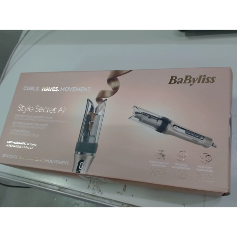 De krultang Style Secret Air C6688E van Babyliss in beige creëert eenvoudig krullen, golven of zachte bewegingen met de Auto-Curl technologie die het haar automatisch rond de keramische cilinder wikkelt. Met 4 temperatuur- en luchtstroominstellingen, 4 timers en 3 rotatie-opties heb je volop keuze voor jouw gewenste stijl. Het veilige ontwerp voorkomt vastzitten van het haar, terwijl de warme lucht zorgt voor een gelijkmatig en glanzend resultaat vanaf de punten. Dankzij het meedraaiend snoer van 2.4 m beweeg je vrij tijdens het stylen. Met een gewicht van 0.584 kg ligt de krultang comfortabel in de hand voor dagelijks gebruik.