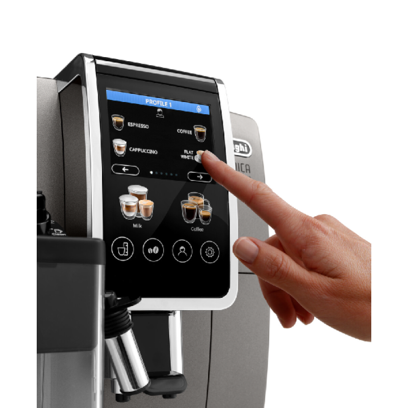 Met de Dinamica Plus heb je toegang tot 24 verschillende koffiedranken, waaronder klassiekers zoals espresso, cappuccino en latte macchiato, maar ook speciale dranken zoals Verlängerter, Café Con Leche, Café Au Lait en Galao. Het intuïtieve touchscreen van 3,5 inch (8,89 cm) maakt het eenvoudig om je gewenste drank te selecteren met een simpele druk op de knop. Bovendien kun je tot 4 gebruikersprofielen instellen, zodat iedereen in huis zijn of haar favoriete koffie-instellingen kan opslaan. Dit zorgt voor een gepersonaliseerde koffie-ervaring die aansluit bij de voorkeuren van elke gebruiker.