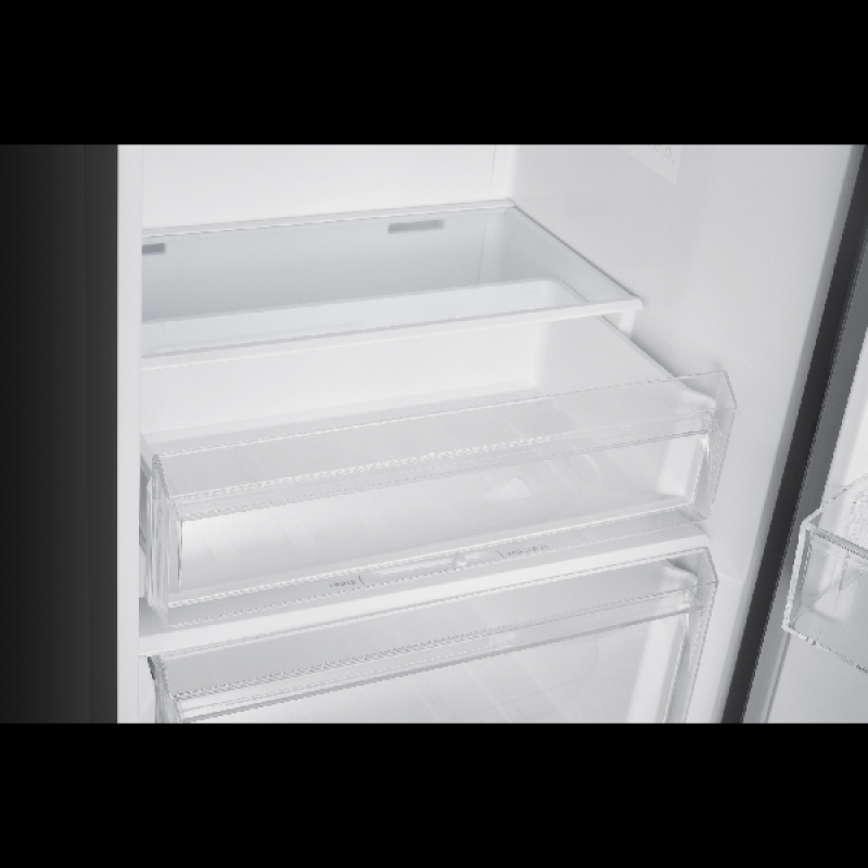 Bewaar zorgeloos al jouw levensmiddelen in de vrijstaande Koenic KFR 621 D NF-koelkast. Het apparaat is uitgevoerd in een stijlvolle RVS-kleur die jouw keuken meteen een stoer accent geeft. De koelkast is praktisch ingedeeld met 3 lades van verschillende groottes voor versproducten en 4 ruime, verstelbare schappen voor andere levensmiddelen. Daarnaast vind je in de deur ook nog eens 4 handige vakken, waar ook gemakkelijk grote flessen in passen. De totale opbergcapaciteit van deze Koenic-koelkast komt daarbij neer op 359 liter, die volledig wordt gewijd aan koelruimte. Bovendien zie je dankzij de binnenverlichting in één oogopslag wat je nog allemaal in huis hebt. En omdat het ontdooien van de koelkast niet ieders favoriete klusje is, biedt dit apparaat slimme No Frost-technologie: doordat vocht wordt weggevoerd, kan er geen ijs ontstaan. Zo heb jij er geen omkijken meer naar.