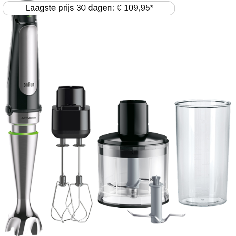 Het onderhoud van deze Braun blender is eenvoudig dankzij de vaatwasmachinebestendige onderdelen. De roestvrijstalen mixervoet en accessoires kunnen veilig in de vaatwasser, wat tijd en moeite bespaart. Het EasyClick-systeem Plus maakt het wisselen van accessoires snel en zonder gedoe. Bovendien voorkomt de SplashControl-technologie spatten tijdens het blenden, waardoor je keuken netjes blijft en je minder hoeft schoon te maken.