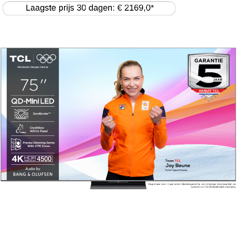 (+) Indrukwekkende beeldkwaliteit: het 75-inch QD-Mini LED-scherm levert levensechte kleuren en diepe contrasten, wat zorgt voor een meeslepende kijkervaring.