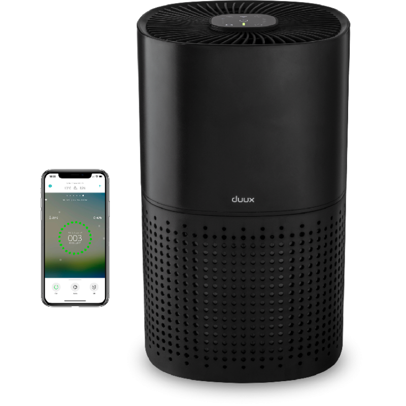 De Duux Bright Smart is een draagbare luchtreiniger die je op afstand kunt bedienen met je smartphone. Dit stijlvol vormgegeven apparaat zorgt ervoor dat de lucht in jouw huis wordt gezuiverd: hij verwijdert tot wel 99,97% van alle verontreiniging. Dit maakt de luchtreiniger ook geschikt voor mensen met ernstige astma en/of allergieën. De luchtreiniger is in te stellen op 3 handmatige snelheidsinstellingen en is voorzien van een automatische modus. Je kiest jouw gewenste instelling in de app, of op het touchdisplay op de Bright Smart zelf.