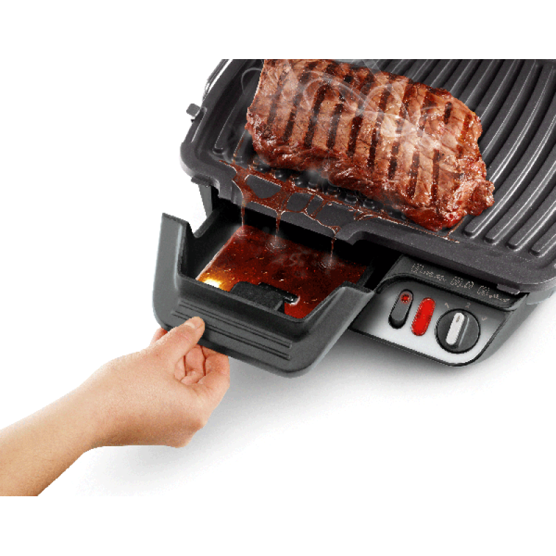 De Tefal Ultra Comfort Compact GC3060 is een veelzijdige contactgrill die je in drie standen kunt gebruiken: als dubbelzijdige grill, in de 180° barbecue stand of mini-ovenstand. Daarnaast is het apparaat voorzien van drie temperatuurinstellingen, geschikt voor groenten, vlees, vis en tosti’s. De grillplaten van de Tefal Ultra Comfort Compact GC3060 hebben een oppervlak van 600 cm² en zijn van gegoten aluminium, wat zorgt voor een optimale warme verspreiding. Dankzij de anti-aanbaklaag hoef je geen olie te gebruiken om te zorgen dat de ingrediënten van je maaltijd niet vastkleven. In combinatie met de ingebouwde opvangbak voor vet en vleessappen zorgt dit ervoor dat je met de Tefal Ultra Comfort Compact GC3060 gezonde maaltijden bereidt. De grillplaten zijn uitneembaar en eenvoudig schoon te maken met de hand of in de vaatwasser.