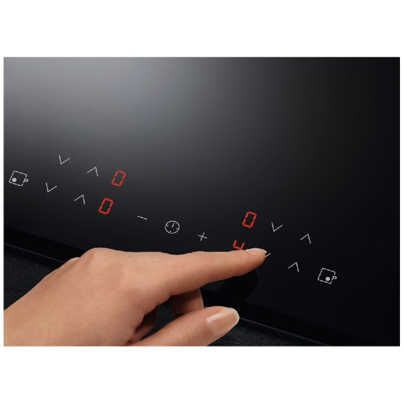 (+) Eenvoudige bediening: met de Touch Control-interface stel je nauwkeurig de temperatuur per kookzone in.
