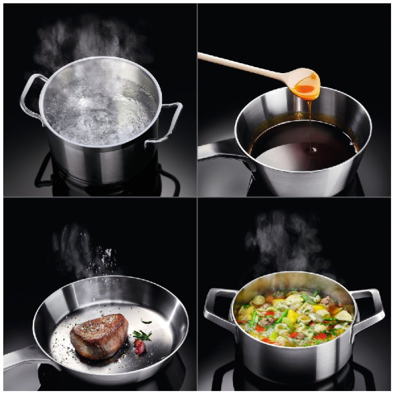 Inductietechnologie zorgt voor snelle en nauwkeurige temperatuurregeling, waardoor je gerechten efficiënt bereidt. Bovendien blijft het oppervlak rondom de pannen koel, wat de veiligheid verhoogt tijdens het koken. Zo vermijd je ongelukken met keukengerei zoals vaatdoeken of verbrande vingers. De slimme positionering van de kookzones biedt ruimte voor pannen van verschillende formaten, wat de flexibiliteit tijdens het koken vergroot. Daarnaast zorgt de panherkenning ervoor dat alleen de gebruikte zones worden verwarmd, wat energie bespaart. Je hoeft je dus nooit zorgen te maken of je de plaat bent vergeten uitschakelen.