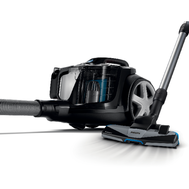Deze handige stofzuiger van Philips is voorzien van PowerCy-clone 8-technologie. Door de snelle luchtstroom in het apparaat wordt stof efficiënt van de lucht gescheiden. Hierdoor wordt de levensduur verlengd en blijft de stofzuiger lange tijd betrouwba-re prestaties leveren. Die prestaties komen ook van het TriActive+-mondstuk, dat geschikt is voor alle vloeren en 3 handelingen in één keer uitvoert. De grote opening aan de voorkant zuigt grotere vuildeeltjes op en de speciaal ontworpen zoolplaat verwijdert stof diep uit tapijt. Tot slot maak je grondig schoon langs muren en meubels dankzij de luchtkanalen en borstels aan beide zijden van het mondstuk.