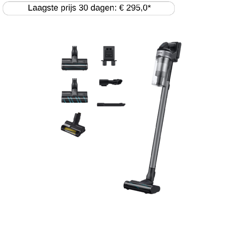 Reinig jouw vloeren in een handomdraai met de hoge zuigkracht van de Samsung Jet 75E Complete-steelstofzuiger. Deze stofzuiger heeft een innovatief en aerodynamisch design, waarmee jij stof en vuil moeiteloos te lijf gaat. Dankzij het lichte gewicht maak je ook gemakkelijke op hogere oppervlakken of boven je hoofd schoon en belast je je polsen minder. Bovendien sla je geen plekje over met krachtige Turbo Action Brush met 180 graden draaibare kop. Deze zuigt de fijnste stofdeeltjes op van zowel harde vloeren als tapijten, zodat je niet telkens hoeft te wisselen. Alles komt terecht in een ruim stofreservoir van 0,8 liter, dat eenvoudig te legen en wassen is.