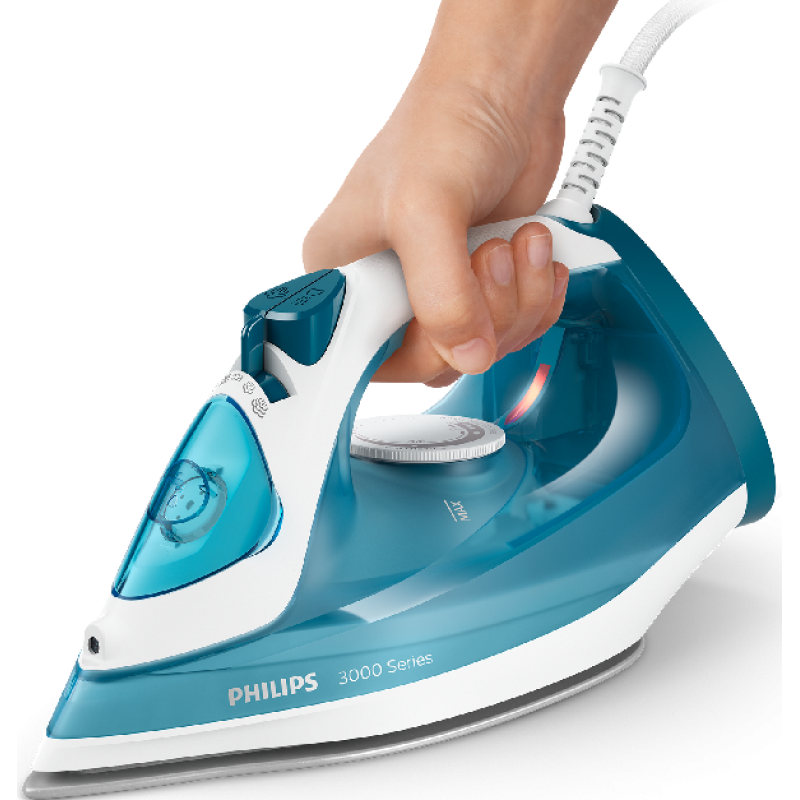 De Philips 3000-serie stoomstrijkijzer maakt strijken makkelijk dankzij de krachtige stoomstoot die zelfs de meest hardnekkige kreuken verwijdert. De duurzame keramische zoolplaat glijdt goed op alle kledingstukken, kleeft niet aan je kleding en is krasbestendig. Met de triple precision-voorkant kan je ook op moeilijke plekken strijken, zoals rond knopen en plooien. Snel strijken is geen probleem met een stroomstoot van tot 140 gram voor extra kracht en een continue stoomproductie tot 30g/min voor consistente prestaties. Met 2100 watt warmt het apparaat snel op en levert het krachtige prestaties.