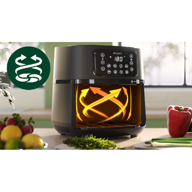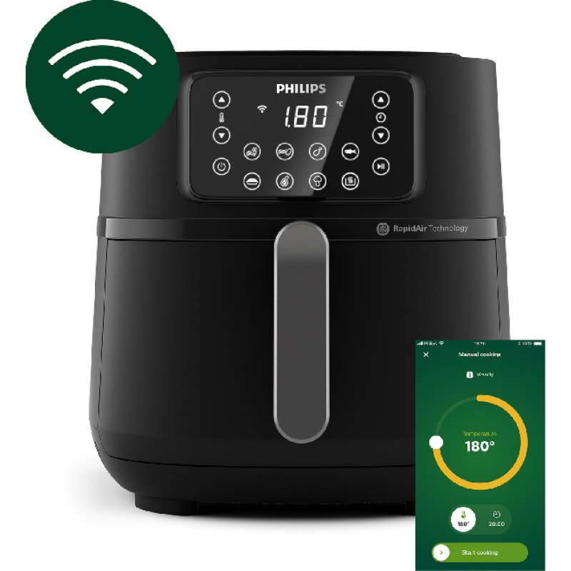 Het apparaat is uitgerust met Rapid Air-technologie. Hierbij maakt een wervelende, hete lucht jouw eten knapperig van buiten en mals van binnen zonder weinig tot geen olie toe te voegen. Dit scheelt tot maar liefst 90%* minder vet. De Philips HD9285/90 is verder te verbinden met de NutriU-app. In deze app kies je een recept, stuur je het naar de airfryer en monitor je jouw maaltijd gewoon vanaf de bank. Zodra het eten klaar is, krijg je een melding. De heteluchtfriteuse is bovendien compatibel met Amazon Alexa, waardoor het mogelijk is om hem met je stem te bedienen.