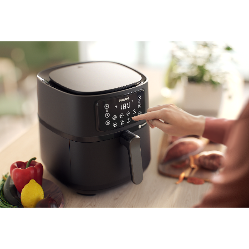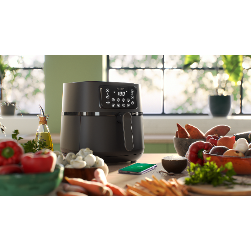 De Philips HD9285/90 is een XXL-airfryer waarmee je heerlijke maaltijden voor het hele gezin maakt. Kies uit een van 16 verschillende functies om jouw gerechten, snacks en andere lekkernijen op jouw favoriete manier te bereiden, waar de Rapid Air-technologie ervoor zorgt dat je hiervan op een gezonde manier geniet. Verder is het mogelijk om deze heteluchtfriteuse op afstand te bedienen via de NutriU-app op je smartphone of tablet.