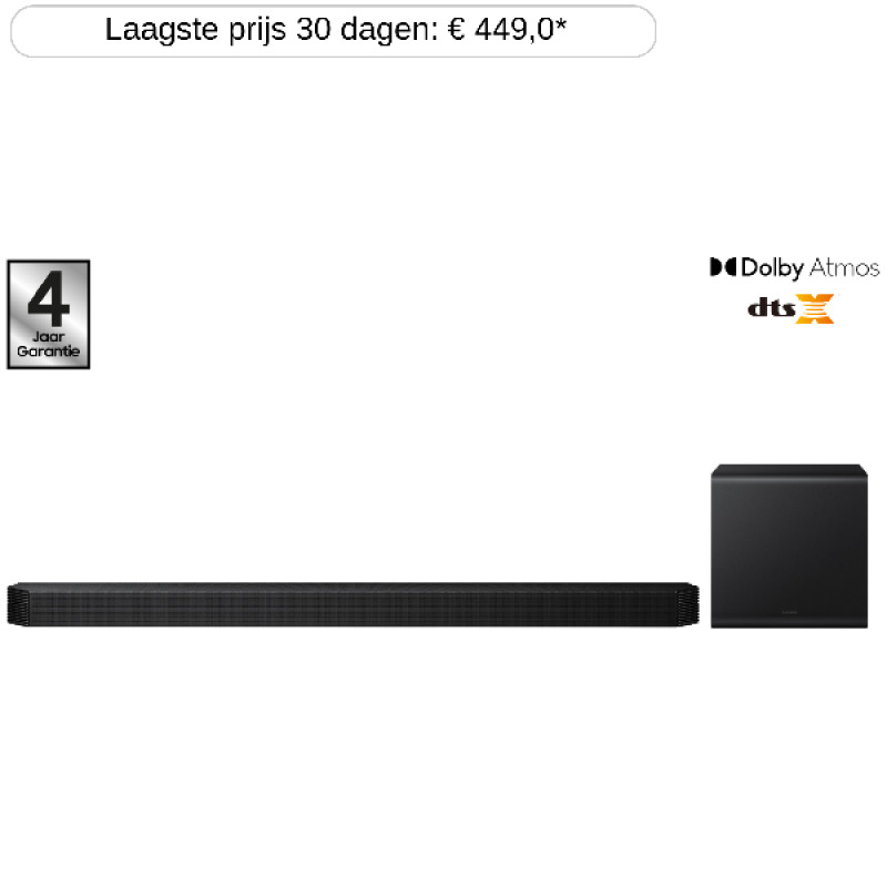 De Samsung HW-Q800F/XN is een geavanceerde soundbar die een uitstekende audio-ervaring biedt. Met een 5.1.2-kanaals opstelling en een totaal vermogen van 360 watt levert deze soundbar een rijk en meeslepend geluid, ideaal voor films, muziek en games. Dankzij de ondersteuning van Dolby Atmos en DTS:X-technologie wordt een driedimensionaal geluidsbeeld gecreëerd, waardoor je omgeven bent door geluid. De draadloze subwoofer, uitgerust met een krachtige 8-inch driver, zorgt voor diepe en krachtige basweergave, wat bijdraagt aan een dynamische luisterervaring. De soundbar is ontworpen om naadloos samen te werken met Samsung QLED-tv's, waardoor functies zoals Q-Symphony mogelijk zijn. Hierbij werken de luidsprekers van de tv en de soundbar samen voor een nog rijker geluid. Er zijn verschillende mogelijkheden om de soundbar draadloos met je apparaten te verbinden, waaronder bluetooth en wifi. Daarnaast beschikt de soundbar over HDMI eARC-ondersteuning, wat zorgt voor een hoge kwaliteit audio-overdracht via een enkele kabel. De soundbar heeft een strak en modern design, met een metalen rooster dat de luidsprekers bedekt en een discreet display aan de rechterzijde voor eenvoudige bediening. De installatie is gebruiksvriendelijk en kan zowel via de meegeleverde afstandsbediening als via de Samsung SmartThings-app worden beheerd.