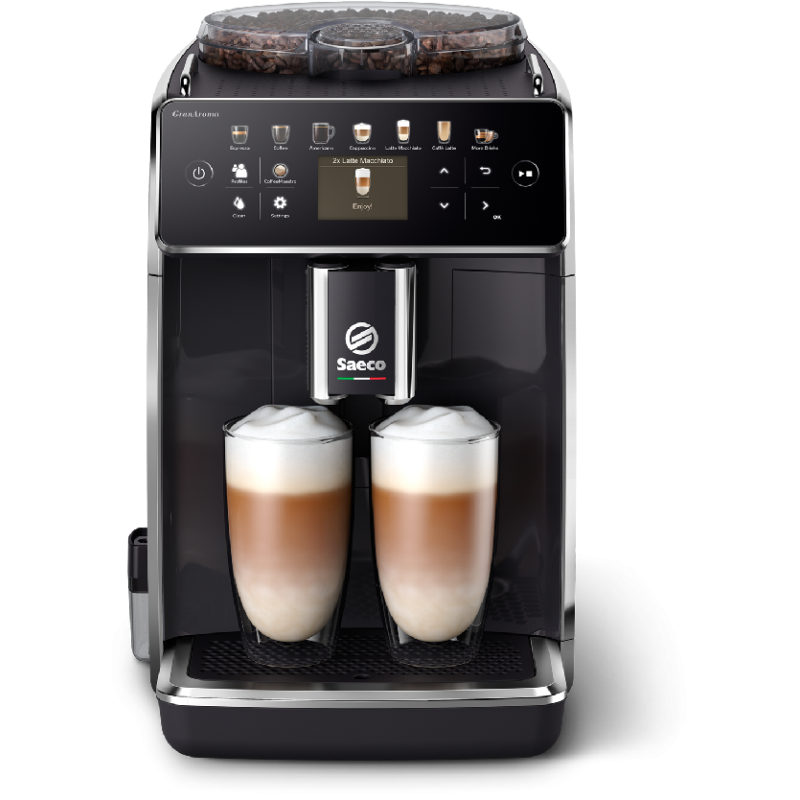 Het onderhoud van de GranAroma is eenvoudig, dankzij het HygieSteam-reinigingssysteem, dat automatisch 99,9% van de micro-organismen op de melkbekeronderdelen verwijdert. Verder is deze volautomatische espressomachine van Saeco voorzien van het AquaClean-filter dat ervoor zorgt dat je tot 5.000 kopjes kunt zetten zonder te hoeven ontkalken, door het water te zuiveren en kalkvorming te beperken. De machine geeft ook duidelijke meldingen wanneer het tijd is om het filter te vervangen of een reinigingsprogramma uit te voeren, zodat je altijd kunt genieten van een hygiënische en smaakvolle kop koffie.
