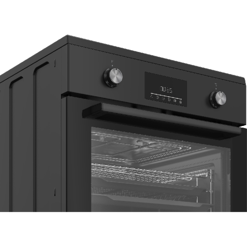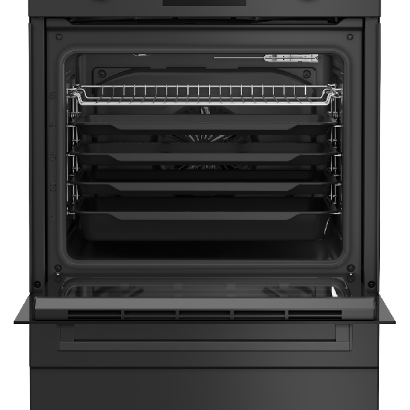 Dit antracietkleurige FBMA6930GA AeroPerfect inductiefornuis van Beko biedt je, met zijn inductiekookplaat en oven van 72 liter, alles wat je nodig hebt om je kookkunsten voluit tentoon te stellen. Hij beschikt over 4 kookzones van 1600 tot 2000 watt met boostfunctie tot 2300 watt. Met een inductiekookplaat kun je met precisie alle soorten gerechten voorbereiden in een mum van tijd. De oven is uitgerust met de AeroPerfect-technologie, waardoor er veel minder warmte verloren gaat tijdens het koken. Hierdoor garen je gerechten sneller en worden ze gelijkmatig bereid. Dankzij de krachtige ventilator in combinatie met de heteluchtfunctie fungeert hij zeer efficiënt. De oven is eenvoudig te bedienen met de draaiknoppen aan de voorkant, terwijl de kookplaat met de sliders op de plaat opereert.
