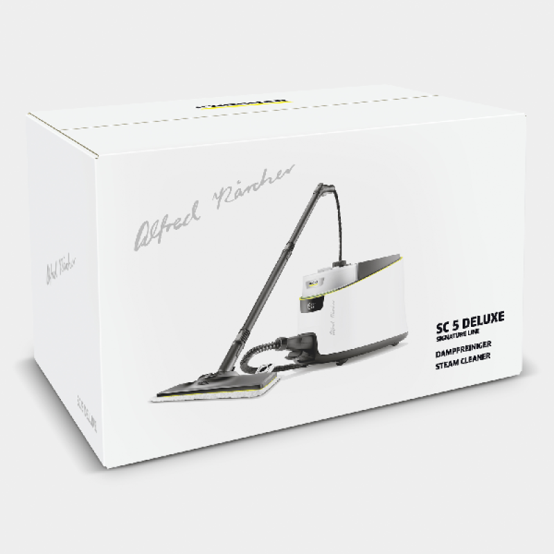 De Kärcher SC 5 Deluxe Signature Line combineert een strak wit design met praktisch gebruiksgemak. Met afmetingen van 40 × 26,5 × 30 cm (B/H/D) en een gewicht van 5,6 kilo voelt het toestel stevig maar hanteerbaar aan. Dankzij de zwenkbare wielen en de ergonomische handgreep beweeg je het apparaat soepel door de kamer. De 1,8 liter watertank is afneembaar en permanent navulbaar, waardoor je zonder onderbreking kunt schoonmaken. Bovendien biedt de 6 meter lange kabel een ruime actieradius, zodat je minder vaak van stopcontact hoeft te wisselen. Zo combineert de SC 5 Deluxe stijl, stabiliteit en gebruiksgemak.