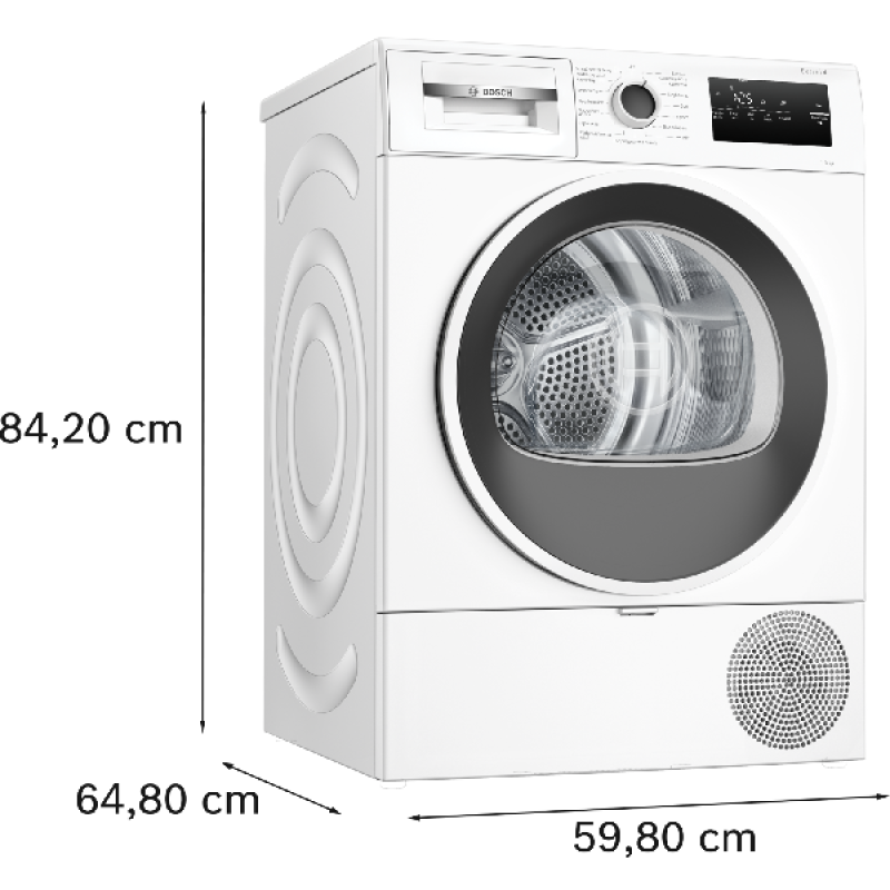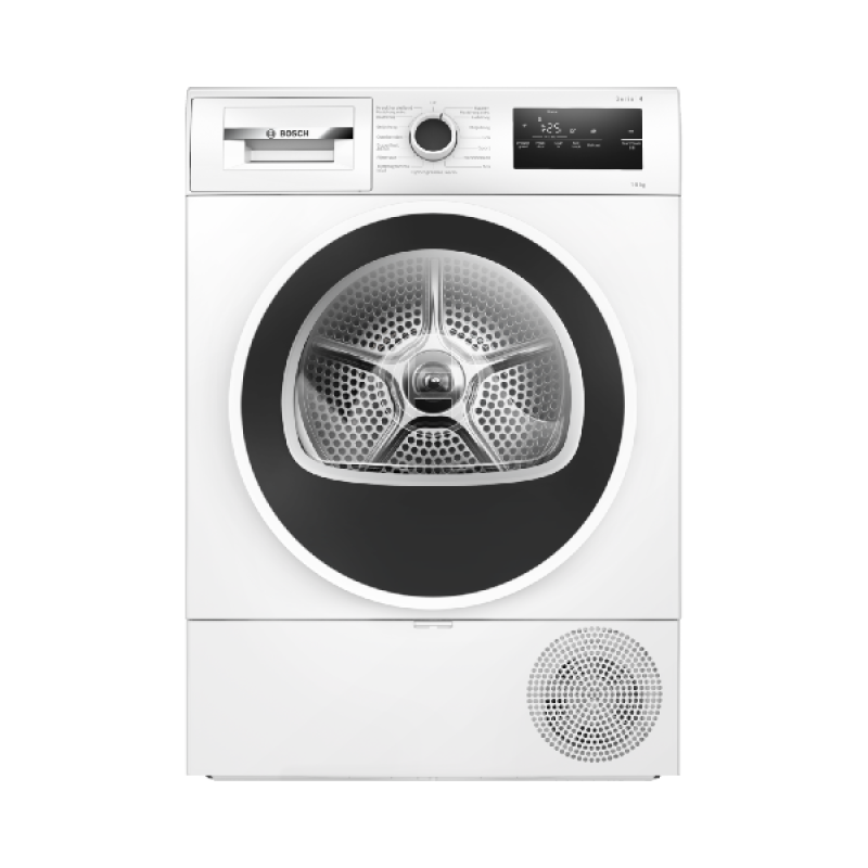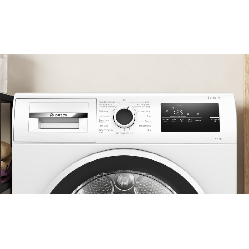 De Bosch WTH8520LNL warmtepompdroger heeft een strak wit ontwerp dat goed staat in elke wasruimte. De trommel biedt ruimte voor maximaal 8 kilogram wasgoed, wat geschikt is voor een huishouden van gemiddelde grootte. Dankzij het Anti-Vibration Design blijft de droger stabiel staan, zelfs bij hogere toerentallen. Dit ontwerp zorgt er ook voor dat het apparaat stiller is tijdens gebruik. Zo kun je ook drogen op momenten dat je liever weinig omgevingsgeluid hebt, bijvoorbeeld 's avonds of vroeg in de ochtend.